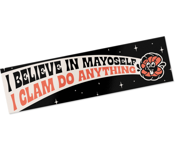 The first of three limited-edition Clam-O-Naise bumper stickers.